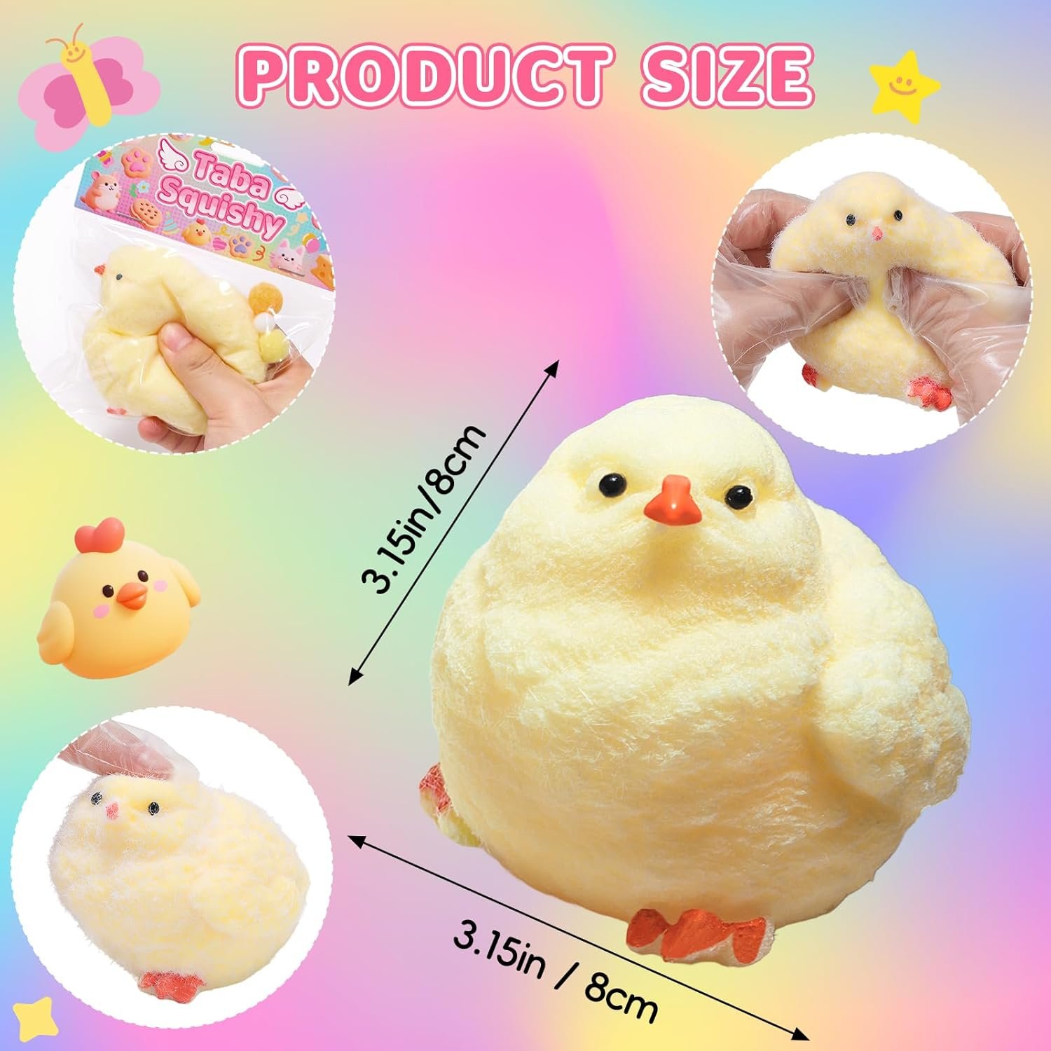 - 【Safe Materials】The taba squishy made of non-toxic TPR material, it is not only safe but also very durable, and the transparent bag is made of PVC material. High quality materials can ensure the long-term use of the product, and the non stick PVC packaging bag is easy to store, keeping the chick toys clean. (Handmade entirely, there may be minor flaws)