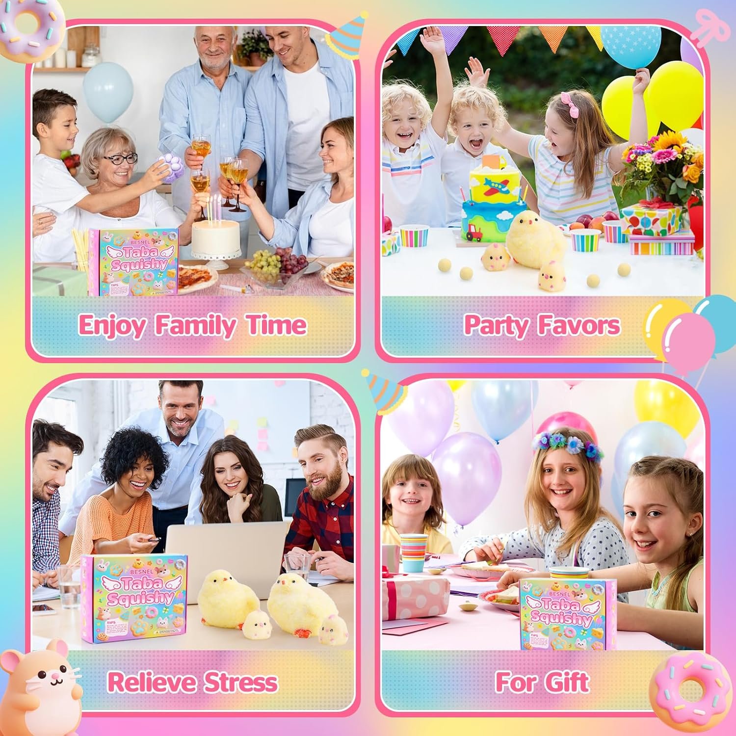 - 【The Perfect Gift Kit】A set of products includes varying sizes 6 cute chicks: Two hens, four chicks, accompanied by an exquisite gift box. Can be used as birthday and party gifts, classroom prizes, etc., to add fun to parties and classes. The taba squishy chick toys are also the best choice for various holiday gifts, such as Thanksgiving, Halloween, Christmas, etc.