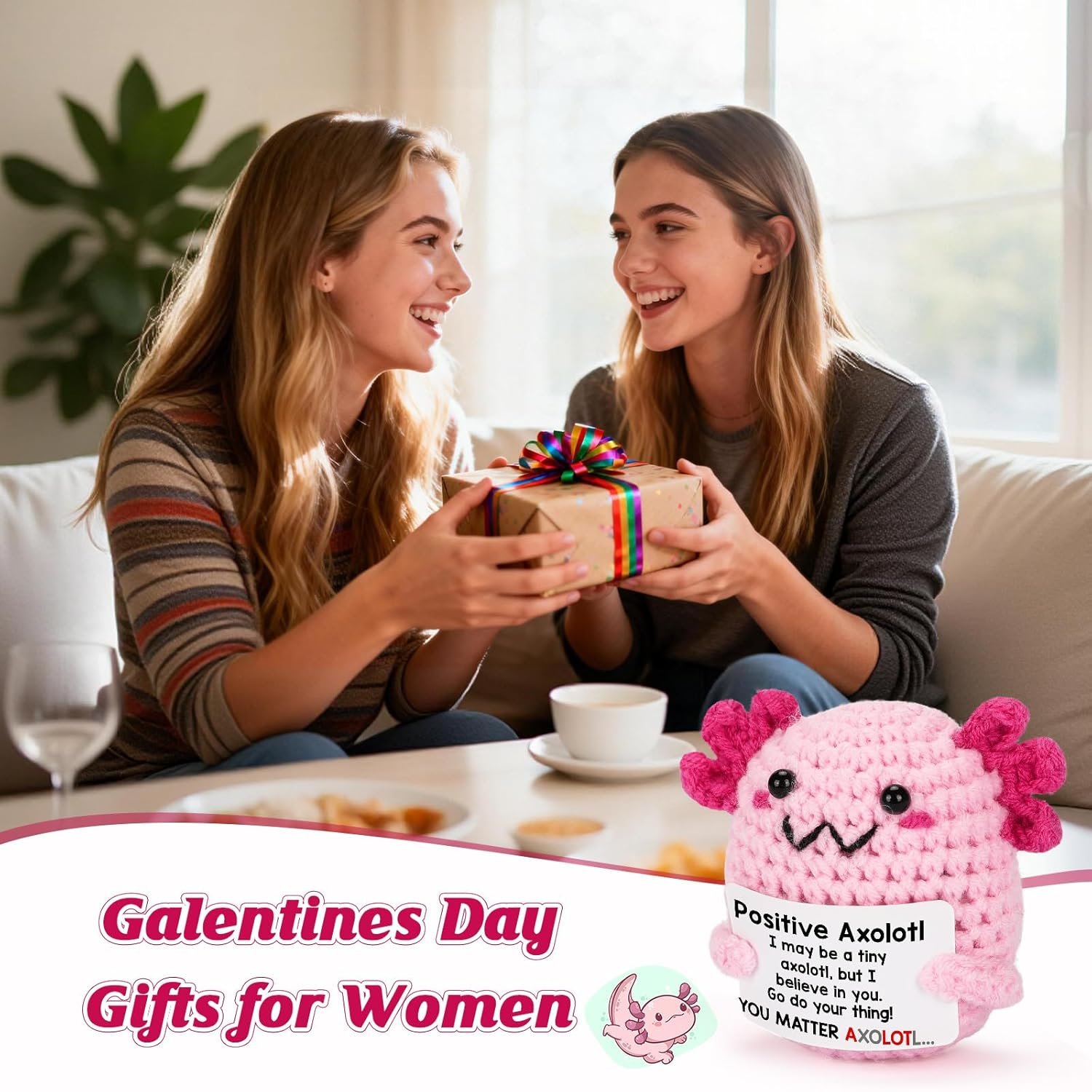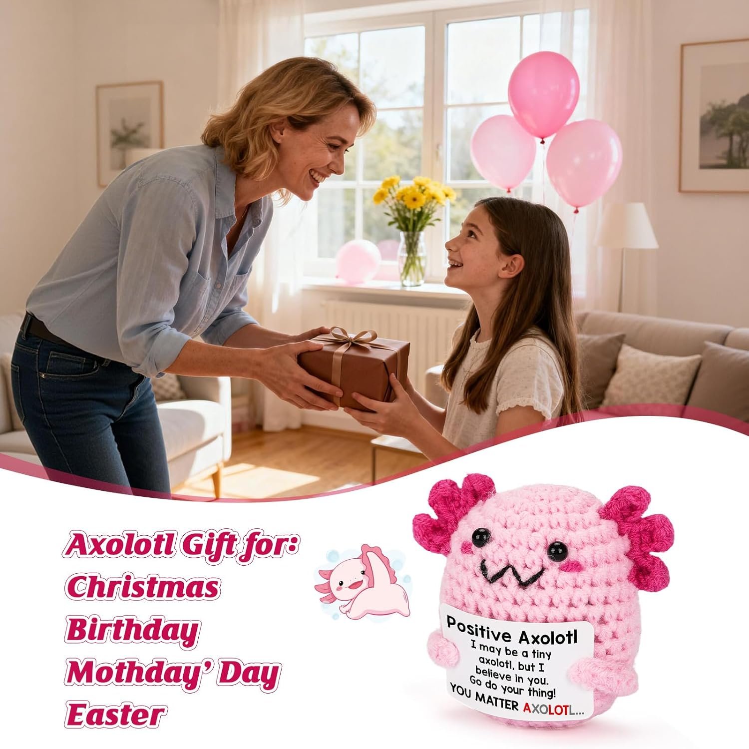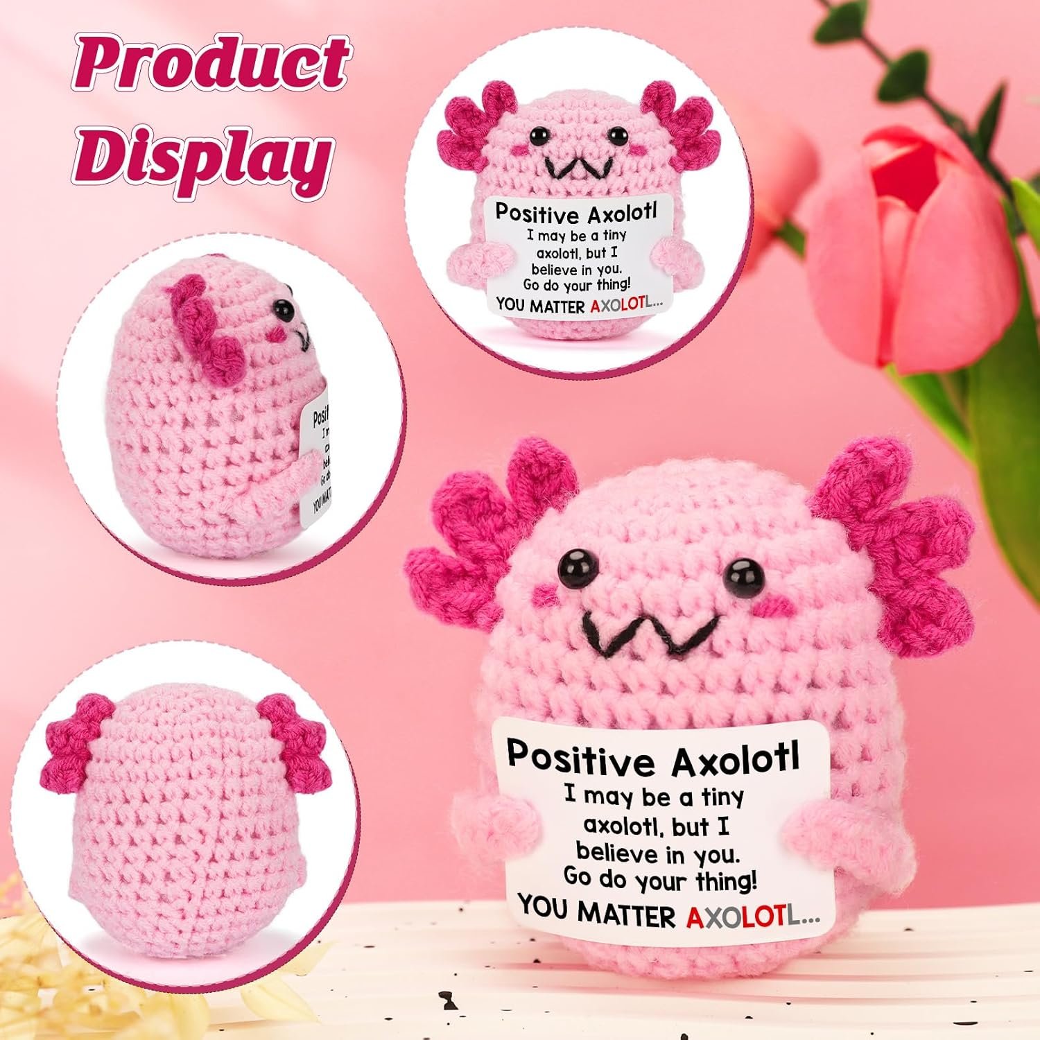 - Emotional Support Plush: This cute crochet axolotl comes with an inspirational message card, bringing positive energy and encouragement to brighten your mood. It’s designed to uplift and provide emotional and mental health support, making it perfect for difficult days.