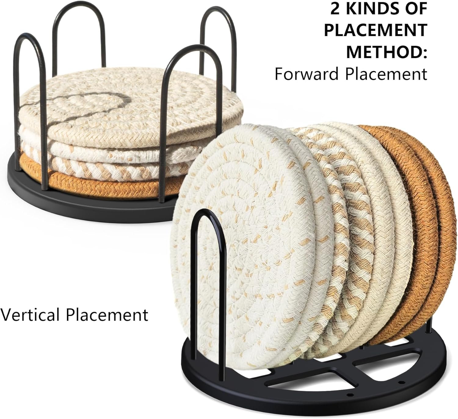 - More Convenient to Clean and Store: Cleaning is a breeze, simply rinse the coasters under running water and hang them to dry. When not in use, store all the coasters in the metal holder to maintain a clean and tidy tabletop.