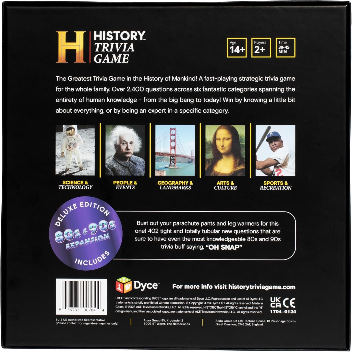 - SIX DIVERSE CATEGORIES – Arts & Culture, Sports & Recreation, Science & Technology, Geography & Landmarks, People & Events PLUS the ALL-NEW 80s & 90s Category – So many different topics, there’s something for everyone. Whether basking in the glow of victory or shouting “‘I should have known that!”, this game is a blast!