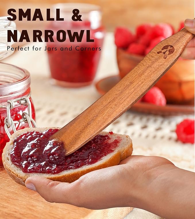 - 【PREMIUM TEAK WOOD & ECO-FRIENDLY】Our skinny spurtle (11 inch/28cm) are made of 100% high-quality pure natural teak wood, which is BPA-free, no glue or lacquer added, only coconut oil finished, environment-friendly materials. Teak wood is safe on every cooking surface that does not leach toxic chemicals into your food while cooking.
